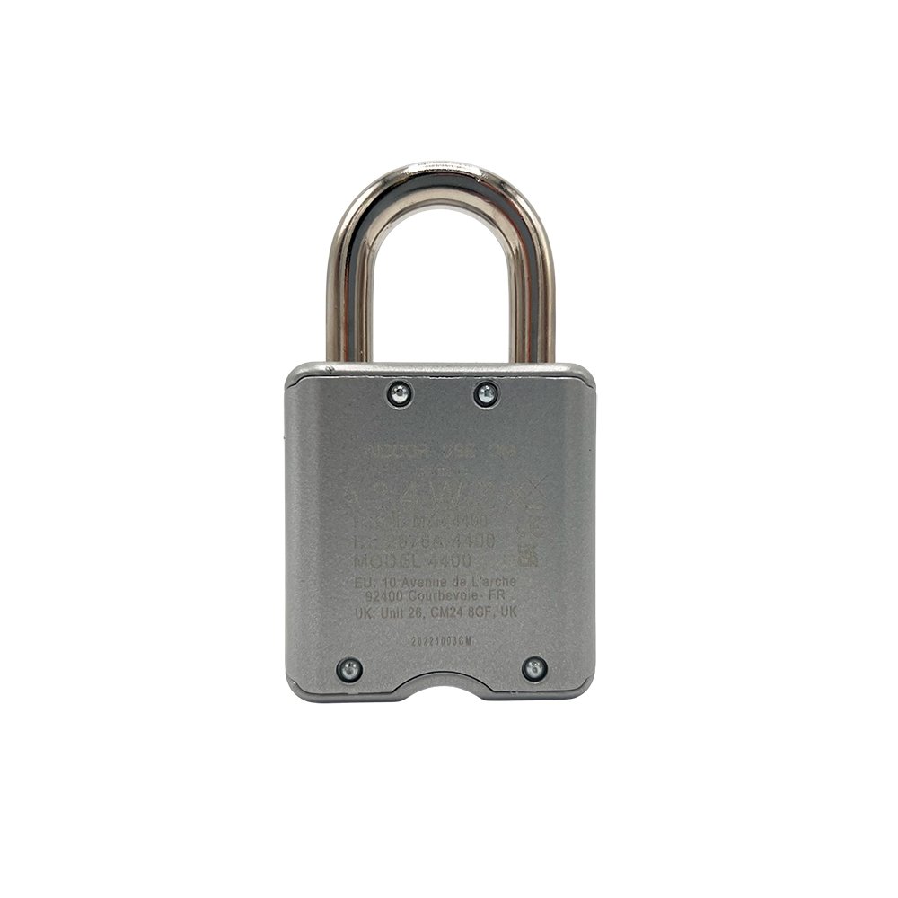 The Master Lock No. 4400EURC Bluetooth® Padlock features a 47mm wide metal body for durability. The 7mm diameter shackle offers 22mm vertical clearance and is made of boron alloy, offering maximum resistance to cutting and sawing.