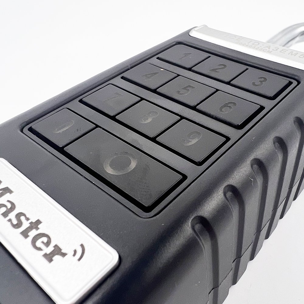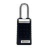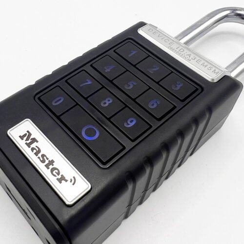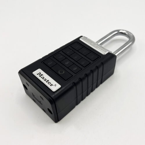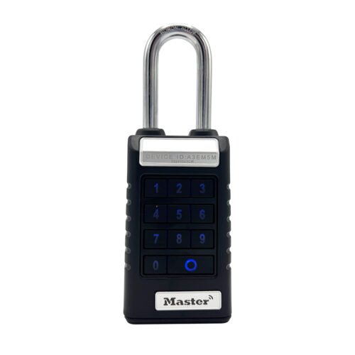 The Master Lock No. 6400EURLJENT Bluetooth® Extended Shackle Padlock features a 62mm wide metal body for durability and security. The 9mm diameter shackle offers 60mm vertical clearance and is made of boron alloy, offering maximum resistance to cutting and sawing. Weather cover provides enhanced weather resistance against snow, rain and temperature extremes.